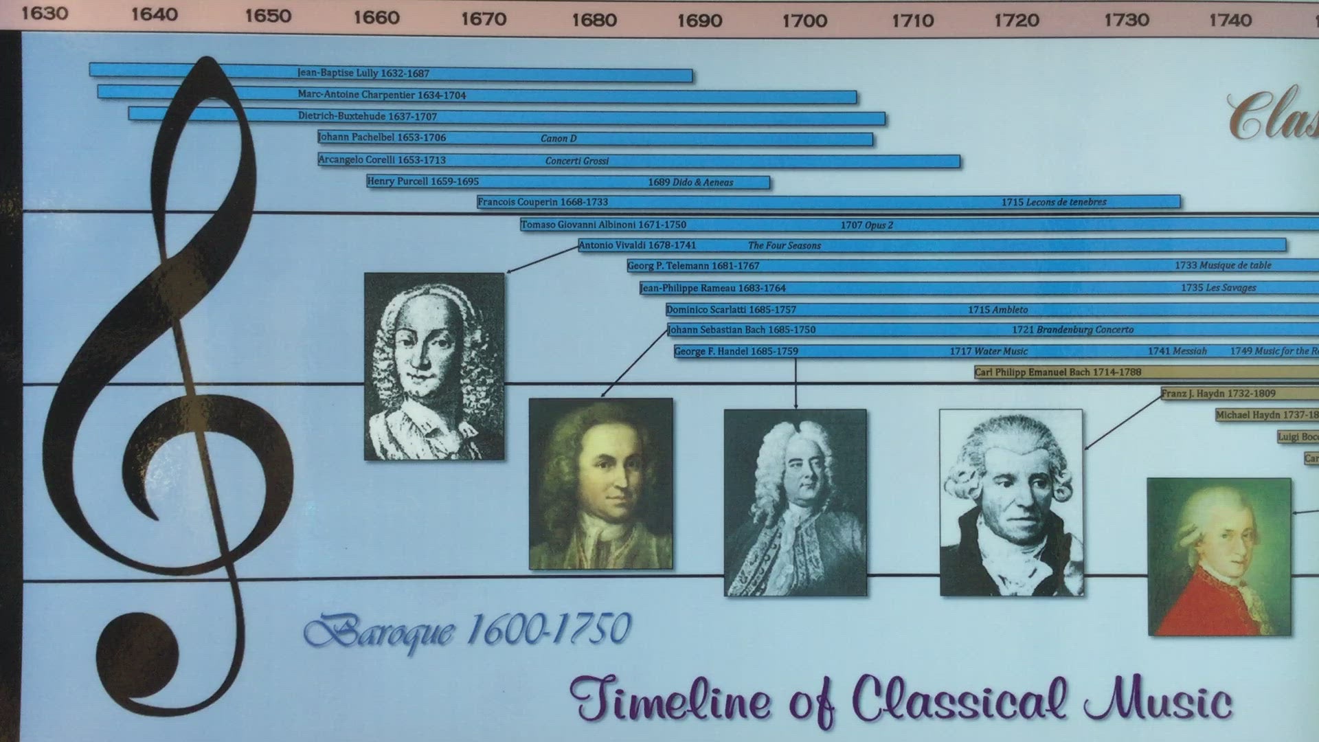 - Baroque Period (1600-1750): Featuring composers like Bach, Handel, and Vivaldi.