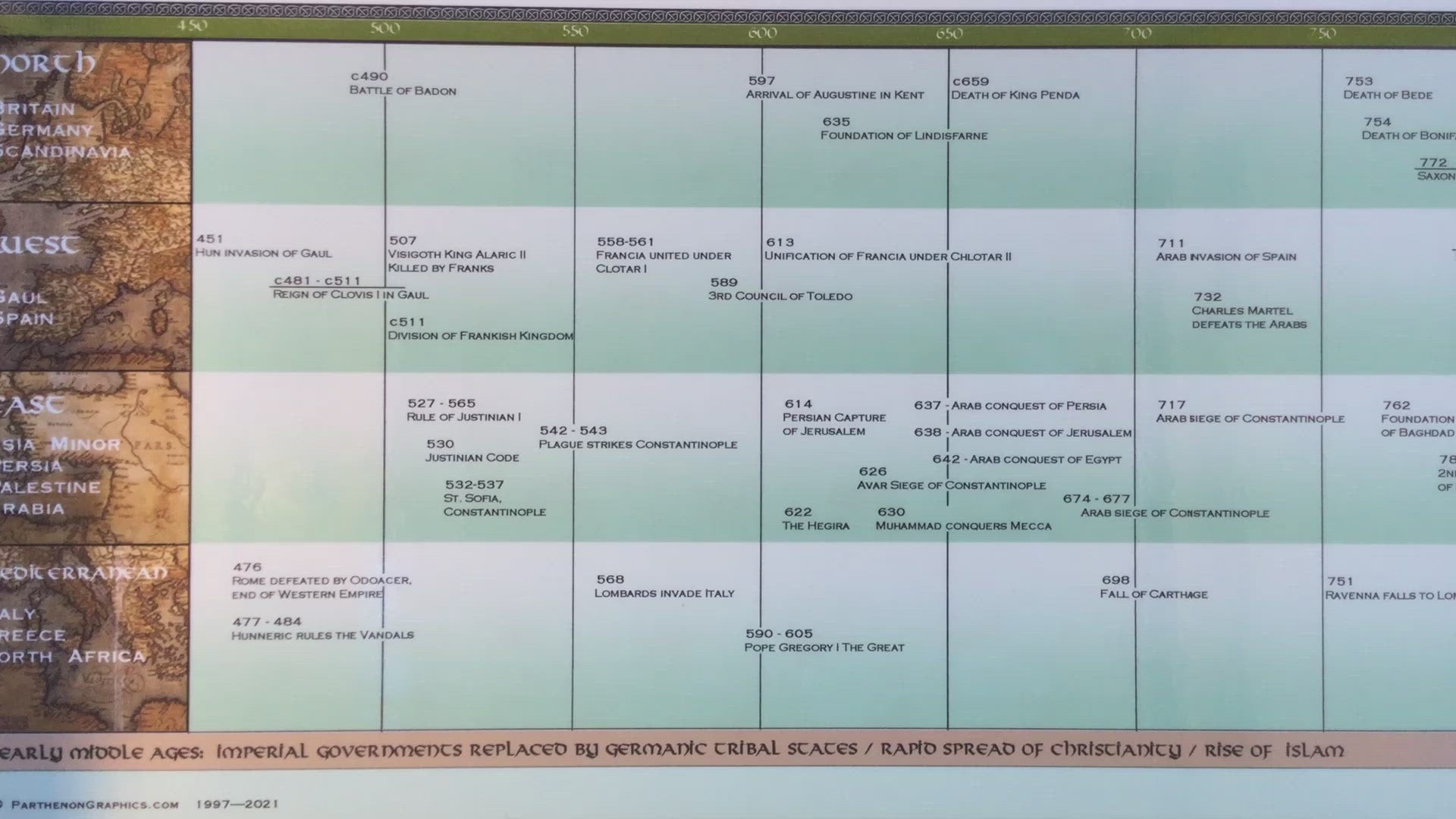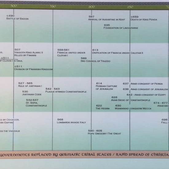 Explore the rich and intricate history of Medieval Europe with this durable and beautifully designed timeline poster, offering a comprehensive view of the events and figures that shaped the Middle Ages.