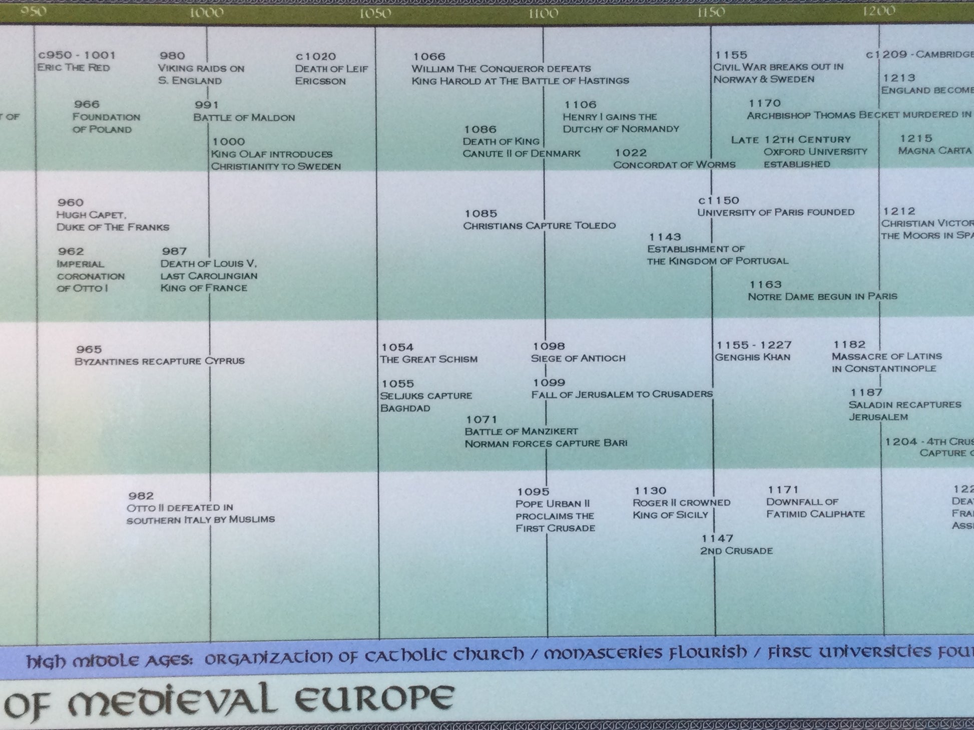 - High Middle Ages: Showcasing the Crusades, the growth of medieval kingdoms, and the flourishing of scholasticism and gothic architecture.