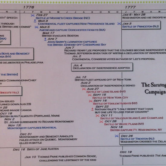 Explore the dramatic history of the American Revolution with this durable and beautifully designed timeline poster, offering a comprehensive view of the events that led to the founding of the United States.