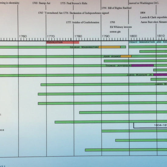- Easy to Read Layout: Organized in a linear format, the timeline allows for easy tracking of presidential terms and the historical context of their presidencies.