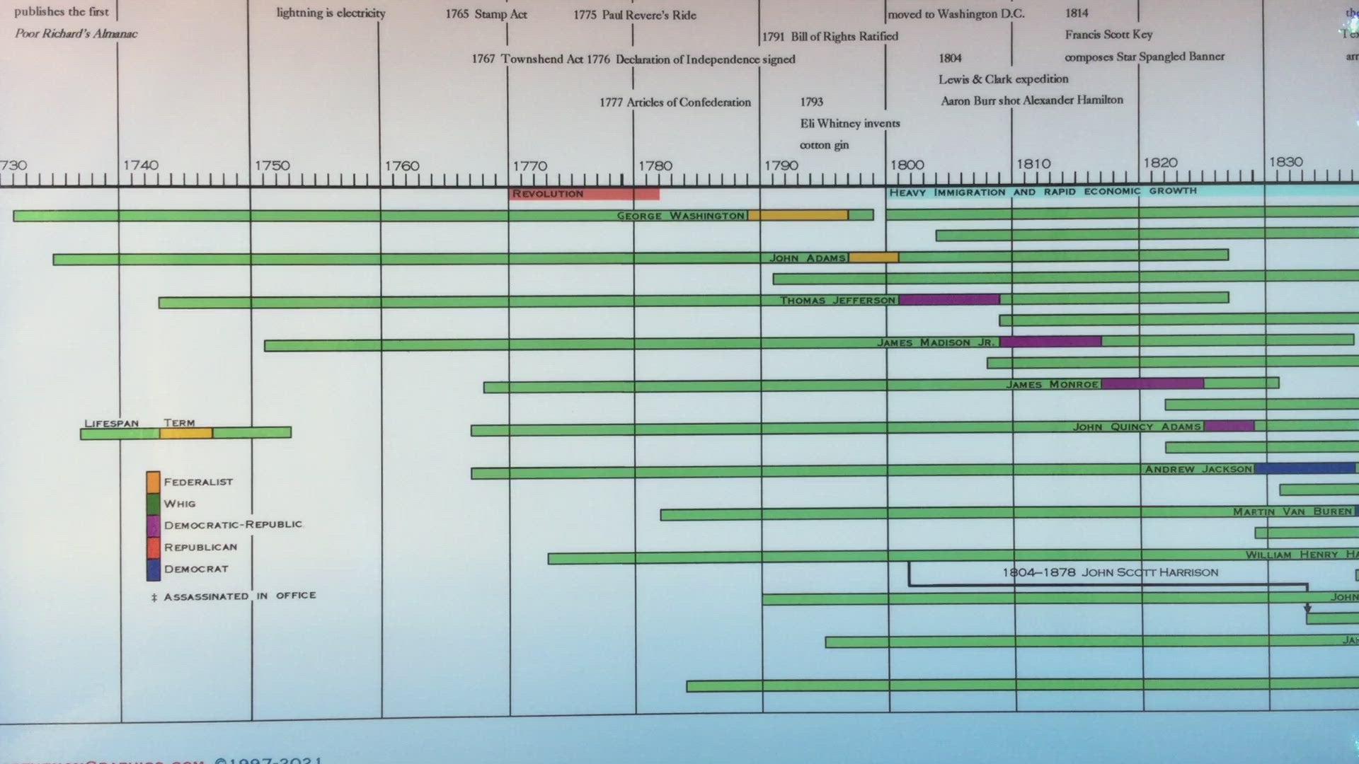 - Comprehensive Chronology: Detailed timeline covering the lifespans and presidential terms of all U.S. presidents, from George Washington to the present.