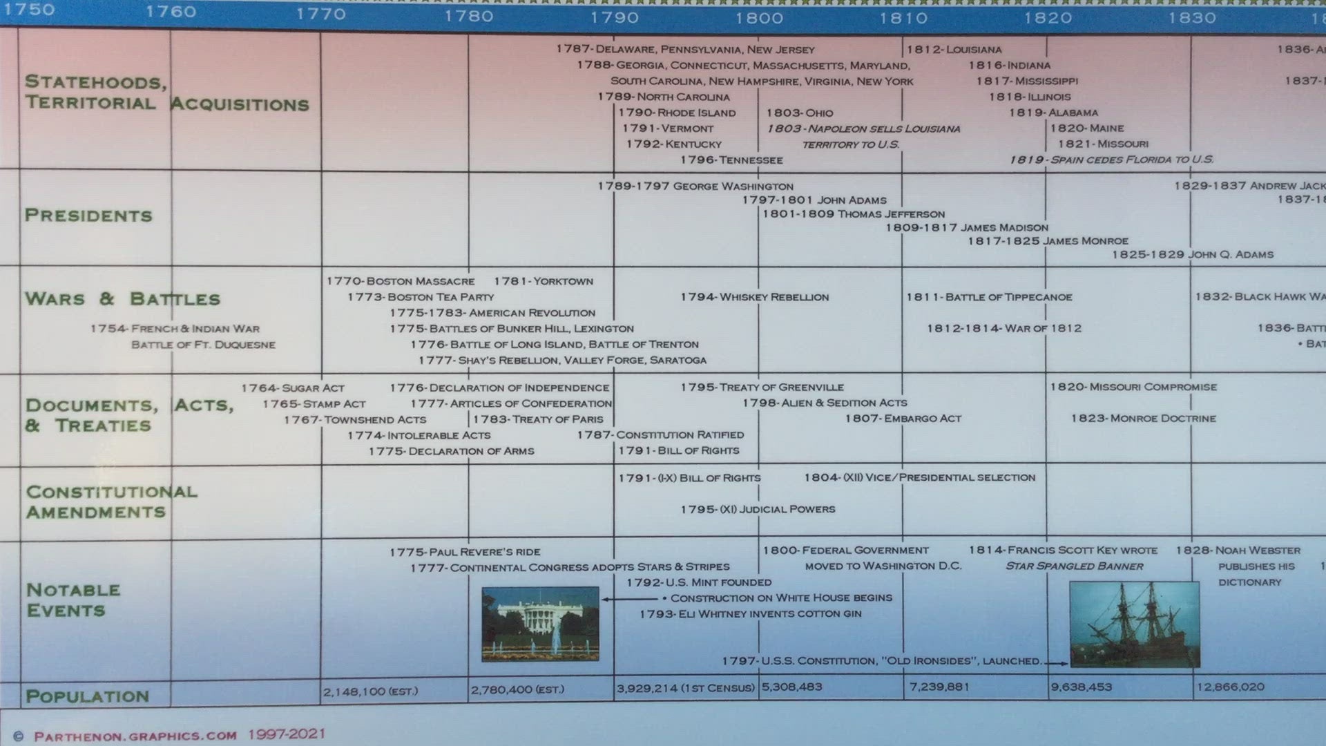 - Comprehensive Timeline: Detailed chronology covering significant events from 1750 to the present, including statehoods, territorial expansions, wars, important documents, and key historical milestones.