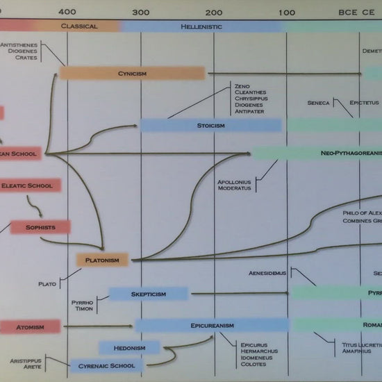Embark on an intellectual journey through the evolution of Western thought with our meticulously detailed timeline poster. Spanning from 600 BCE to the modern day, this poster charts the development of Western philosophy. Measuring 44 inches wide by 9.5 inches tall and laminated for durability, this poster is an essential educational resource and a captivating addition for philosophy enthusiasts and scholars.